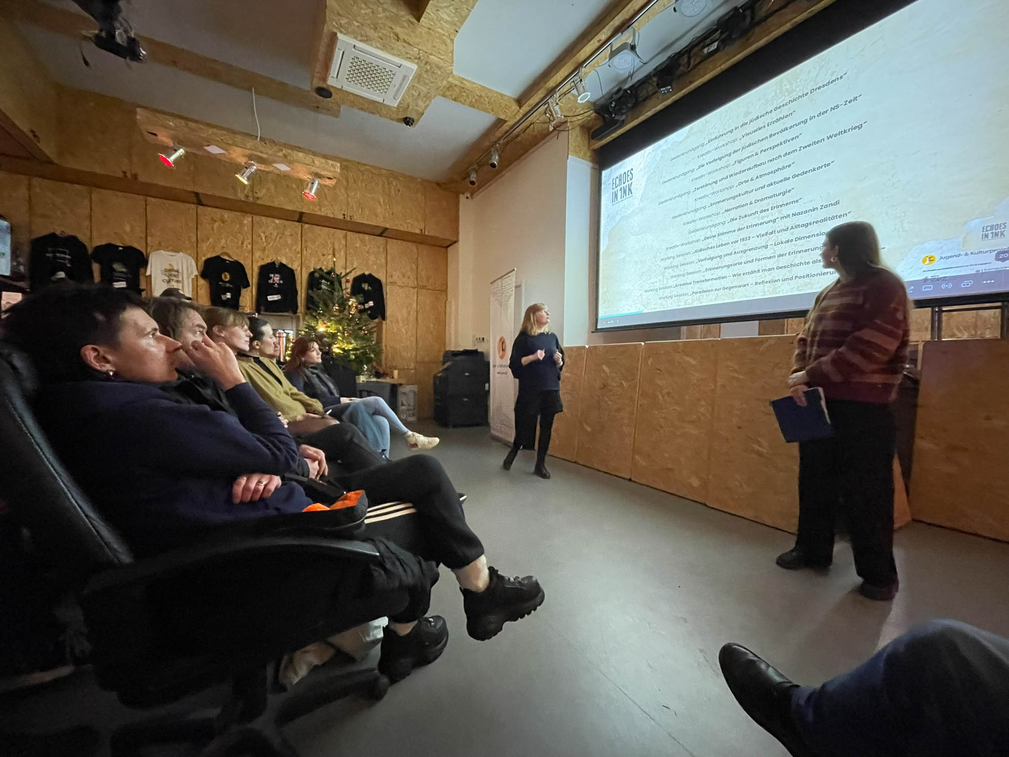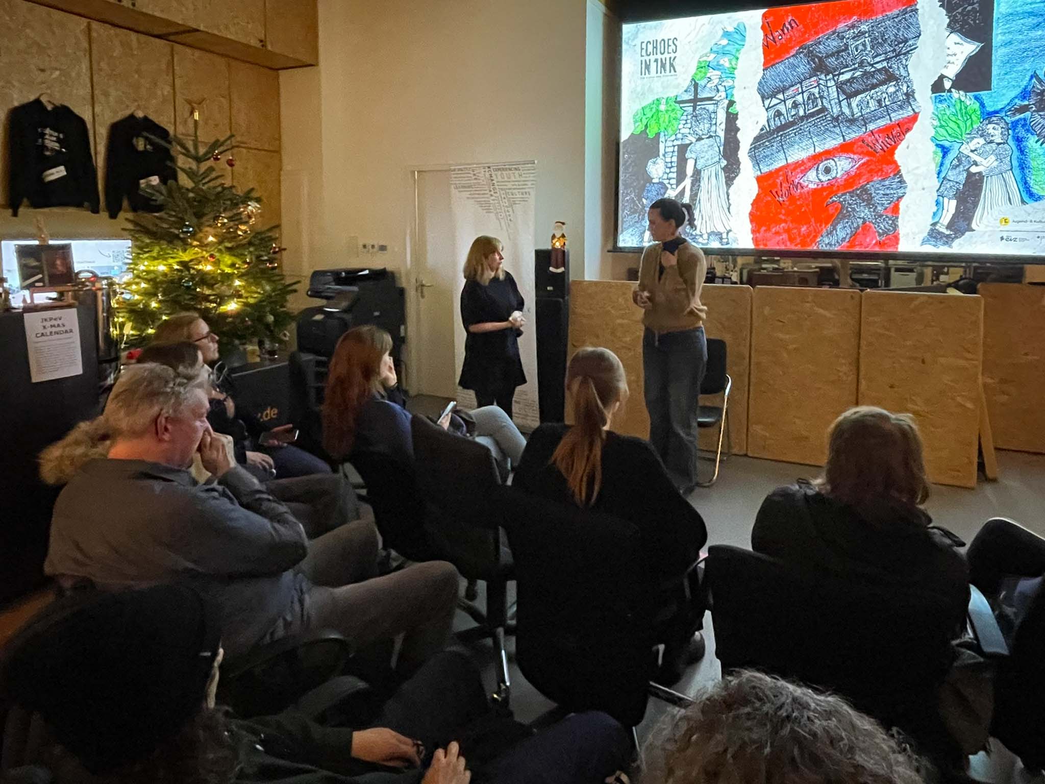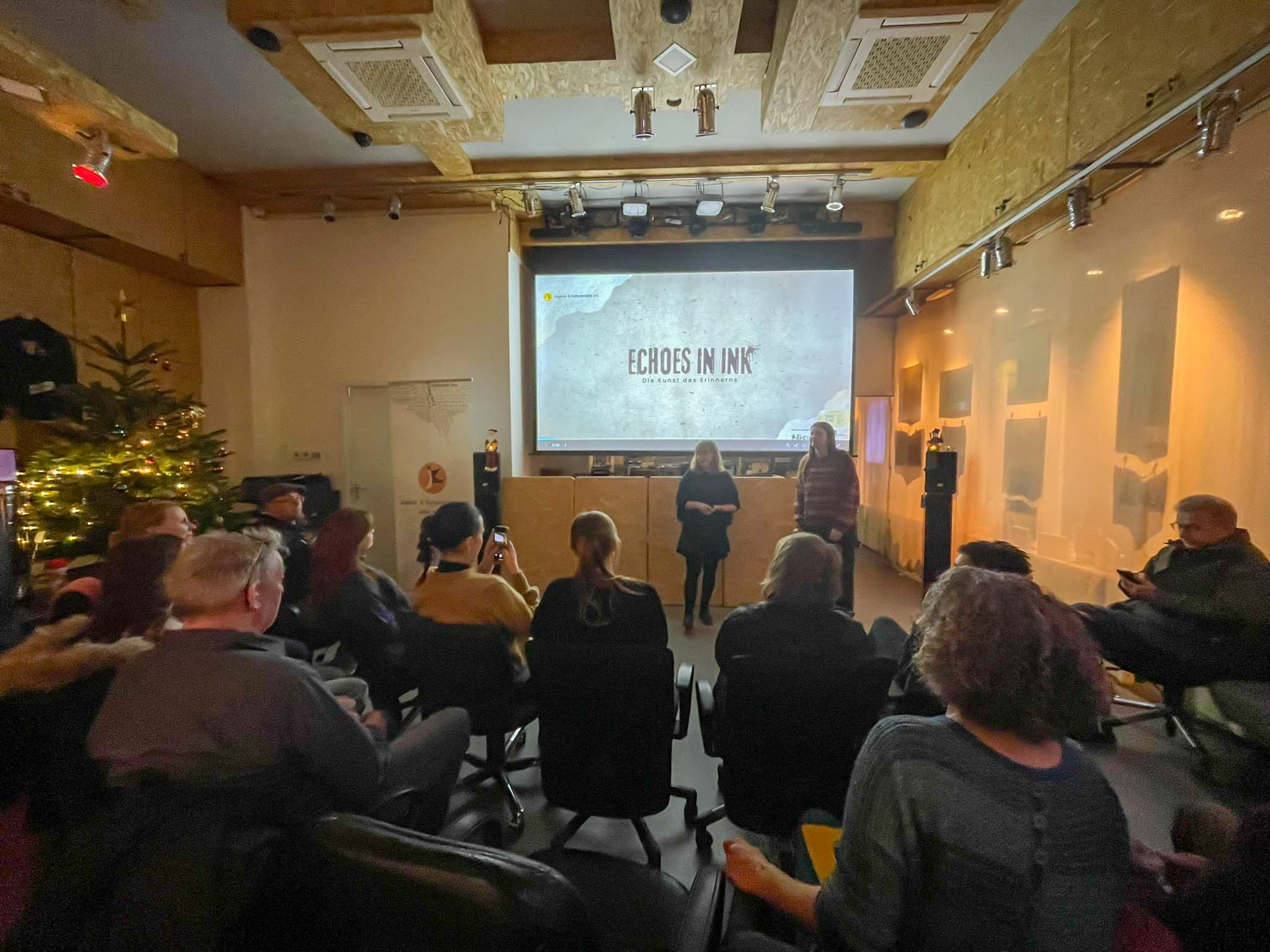 On the evening of December 14, 2025, marking the beginning of the Jewish festival of Hanukkah, the KulturCentrale Dresden became a space for listening, dialogue, and reflection during the launch event of “ECHOES IN INK – The Art of Remembrance”. At the heart of the evening was the artistic engagement of young people with Jewish history, memory culture, and social responsibility.