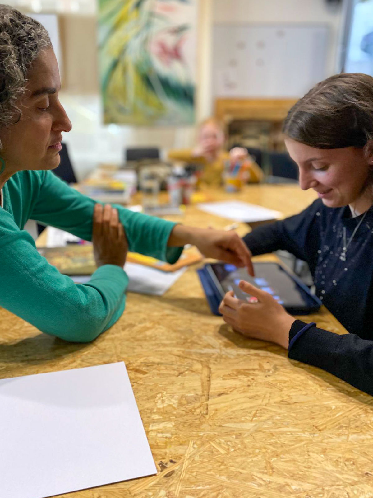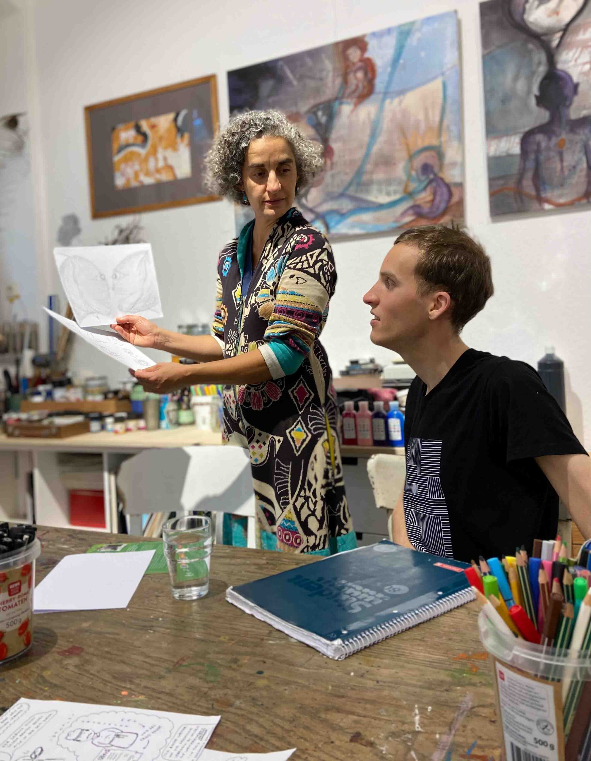 Im Kreativ-Workshop “Figuren & Perspektiven” mit Nazanin Zandi lag der Fokus auf der Entwicklung einer Figur, die stellvertretend für ein Einzelschicksal stehen kann. Der Perspektivwechsel – das Erzählen „aus der Figur heraus“ – förderte Empathie und die kreative Umsetzung historischer Komplexität.