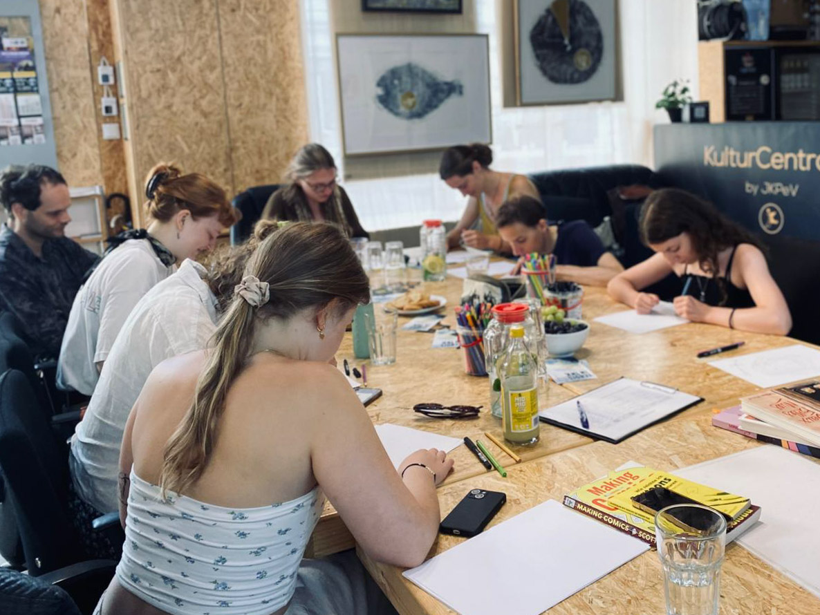 Im Kreativ-Workshop “Narration & Dramaturgie” mit Nazanin Zandi wendeten die Teilnehmenden dramaturgische Techniken an, um ihre Graphic Novels zu strukturieren und das bisher Erarbeitete in eine zusammenhängende Erzählung zu bringen.